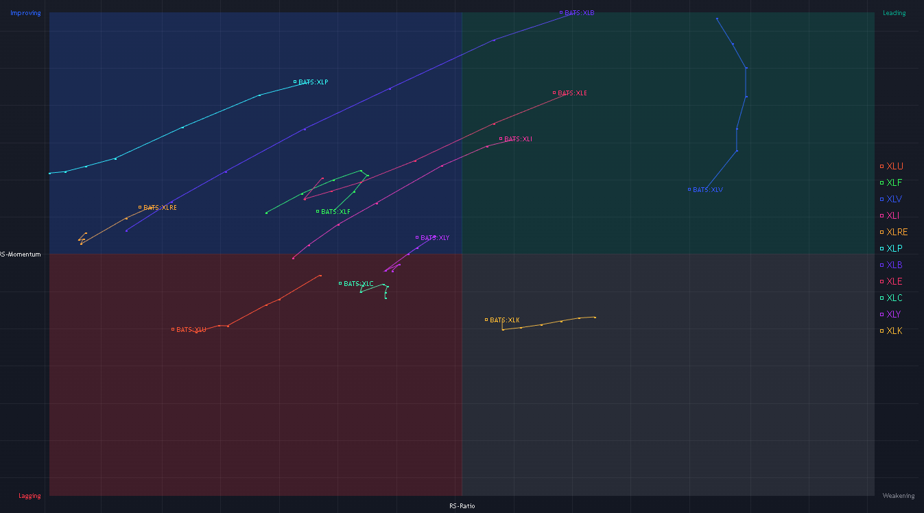 .The Communications sector (XLC), along with Utilities (XLU) remain the only sectors lagging. XLY worked it’s way out of lagging this week. Tech remains the only sector weakening, but there are clear signs of recovery happening there.