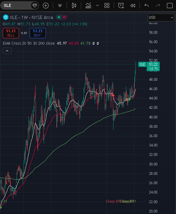 XLK coming from a weakening position has a very good chance of making a strong move as well. The party has already started, as you can see in the chart.